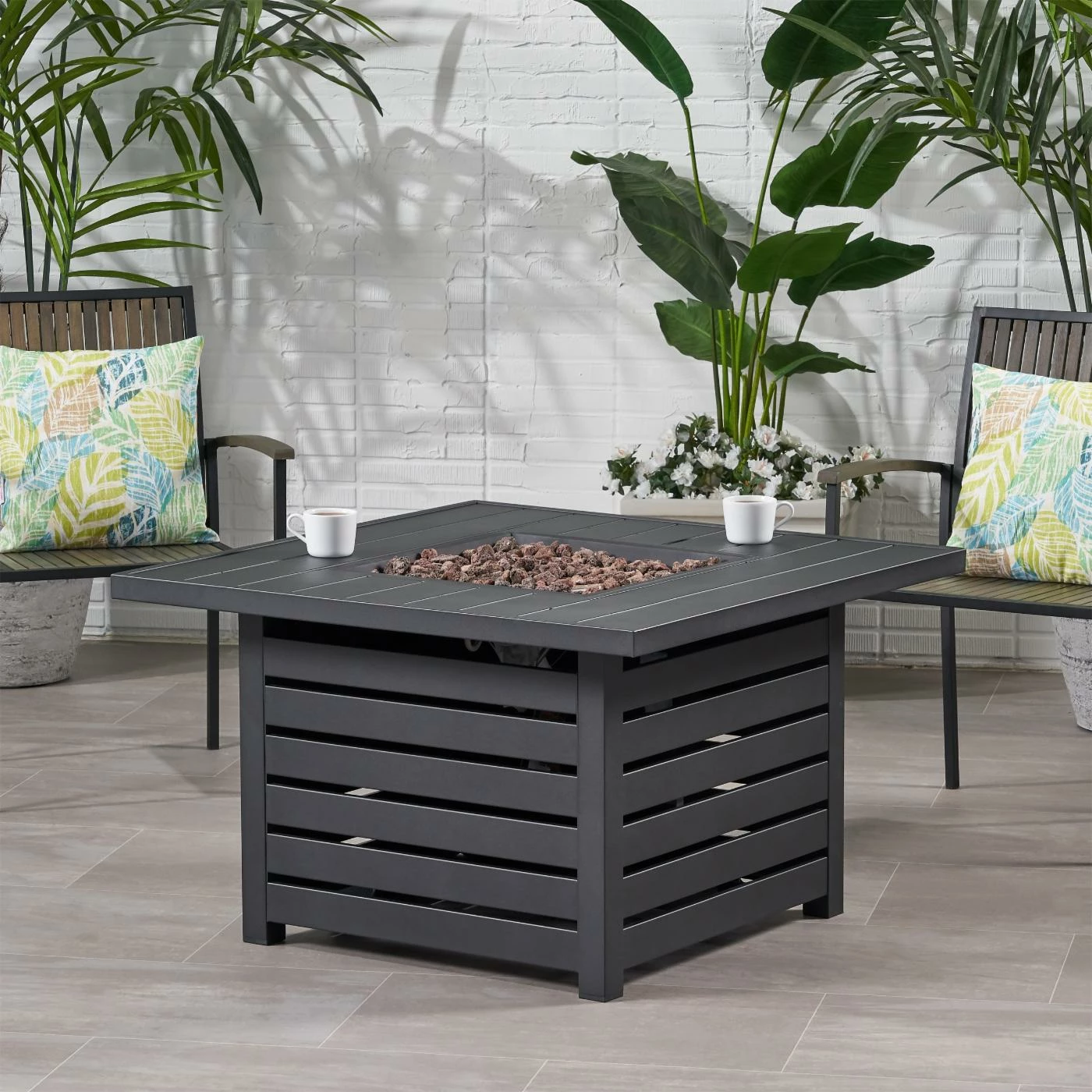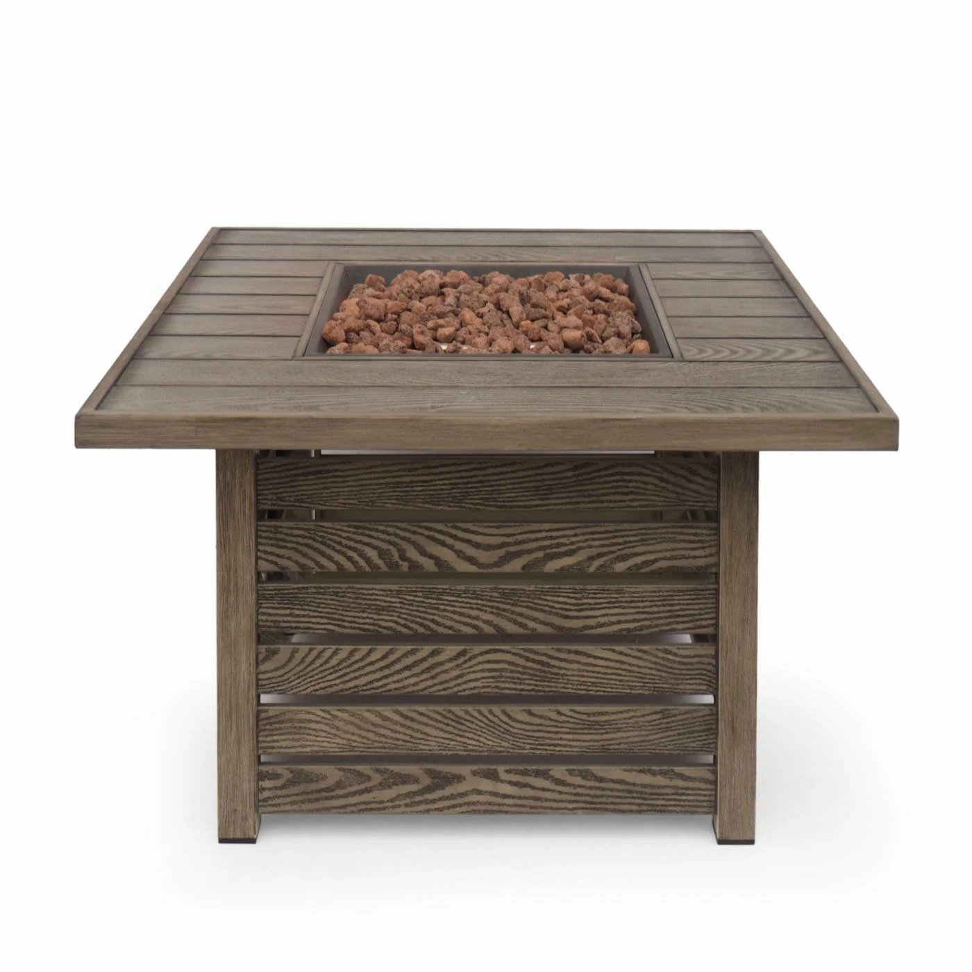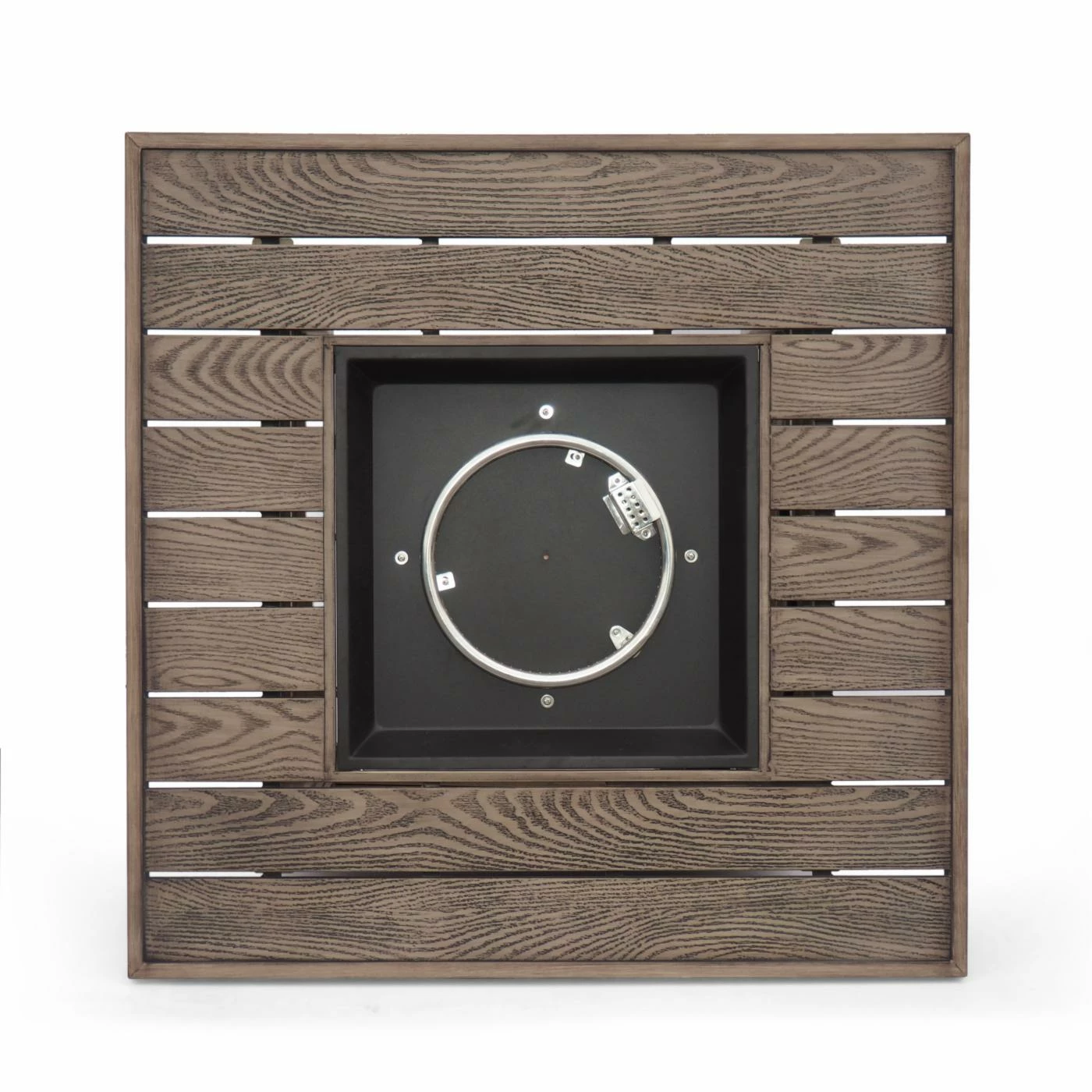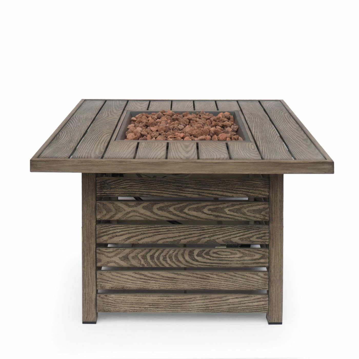 Turn your outdoor space into a place of refinement with an attractive centerpiece that features aspects of high-end living. Featuring 50,000 BTU and sleek iron slats with a rustic wood finish, this piece offers an incredible upgrade in style and warmth for your outdoor space. This square fire pit is perfect for parties with its easy seating arrangement and built-in tank holder. Whether you want to relax around the glow of the fire or spend some quality time with family under the stars, our fire pit will have no trouble gathering everyone together for a good time.