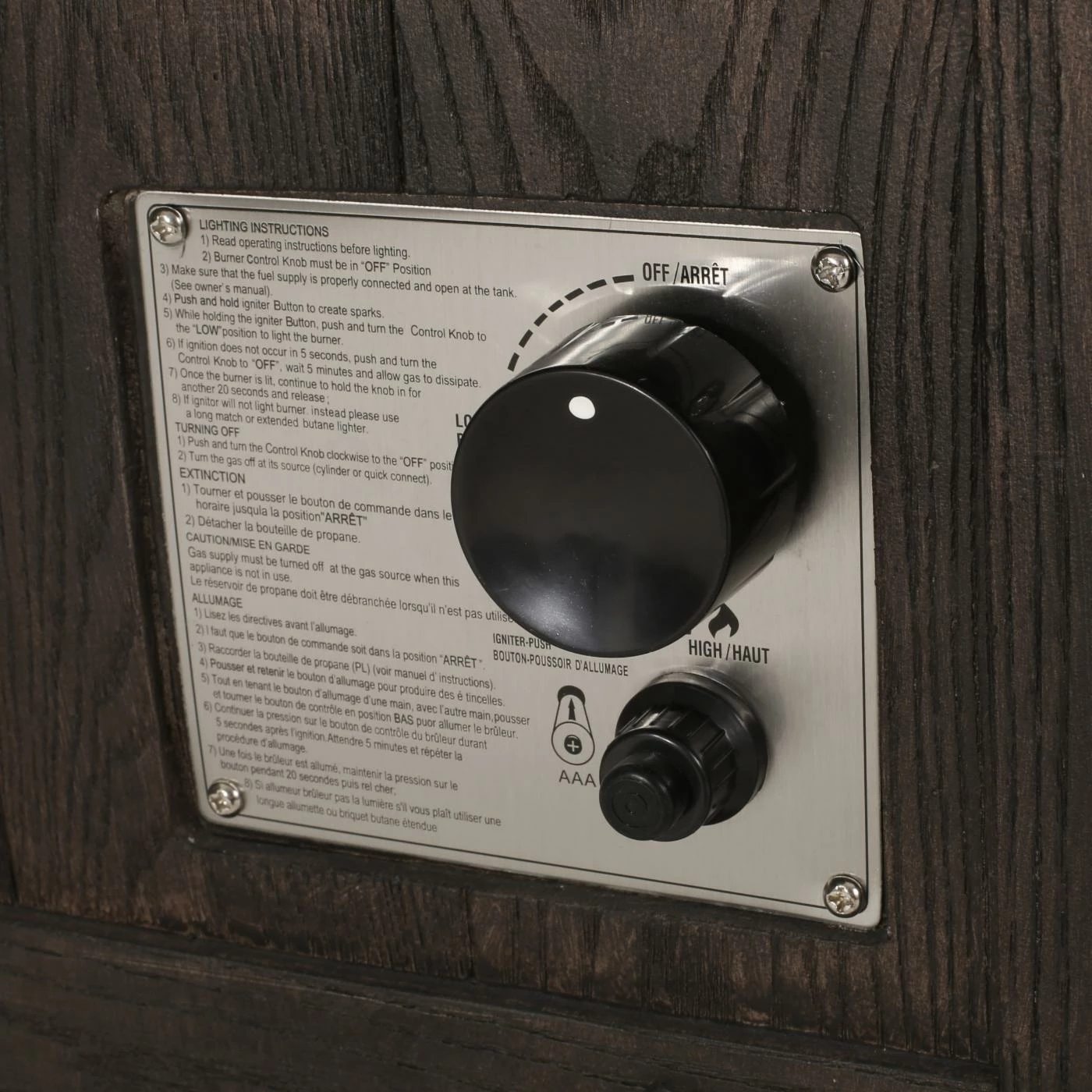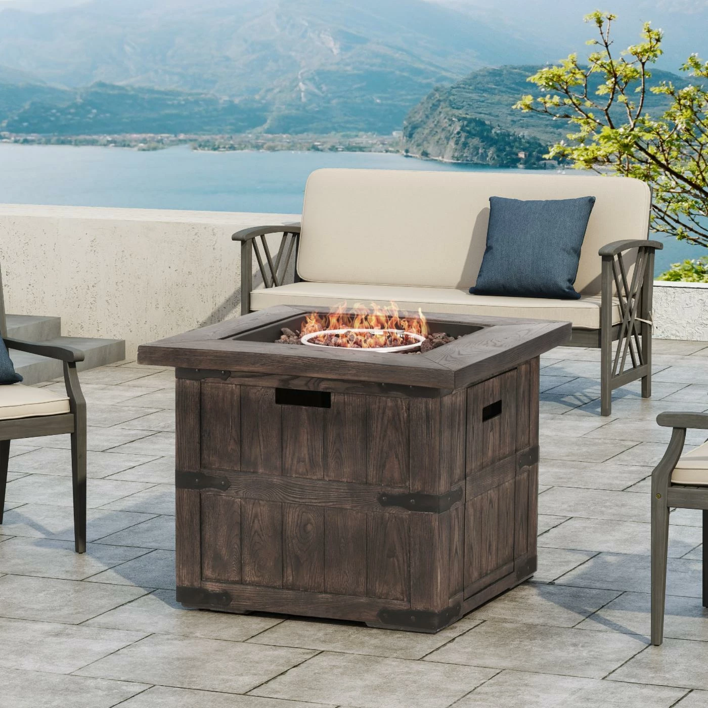 Experience endless summer evenings outdoors with a centerpiece that is sure to keep the conversation flowing. With 40,000 BTU, a square structure of lightweight concrete, and a natural wood texture, our fire pit not only offers an incredible upgrade in style but is also perfect for parties due to its easy seating arrangement and built-in tank holder. From intimate conversations around a cozy fire to stargazing on cool summer nights, our wonderful fire pit will have no trouble gathering everyone together for hours of quality time.