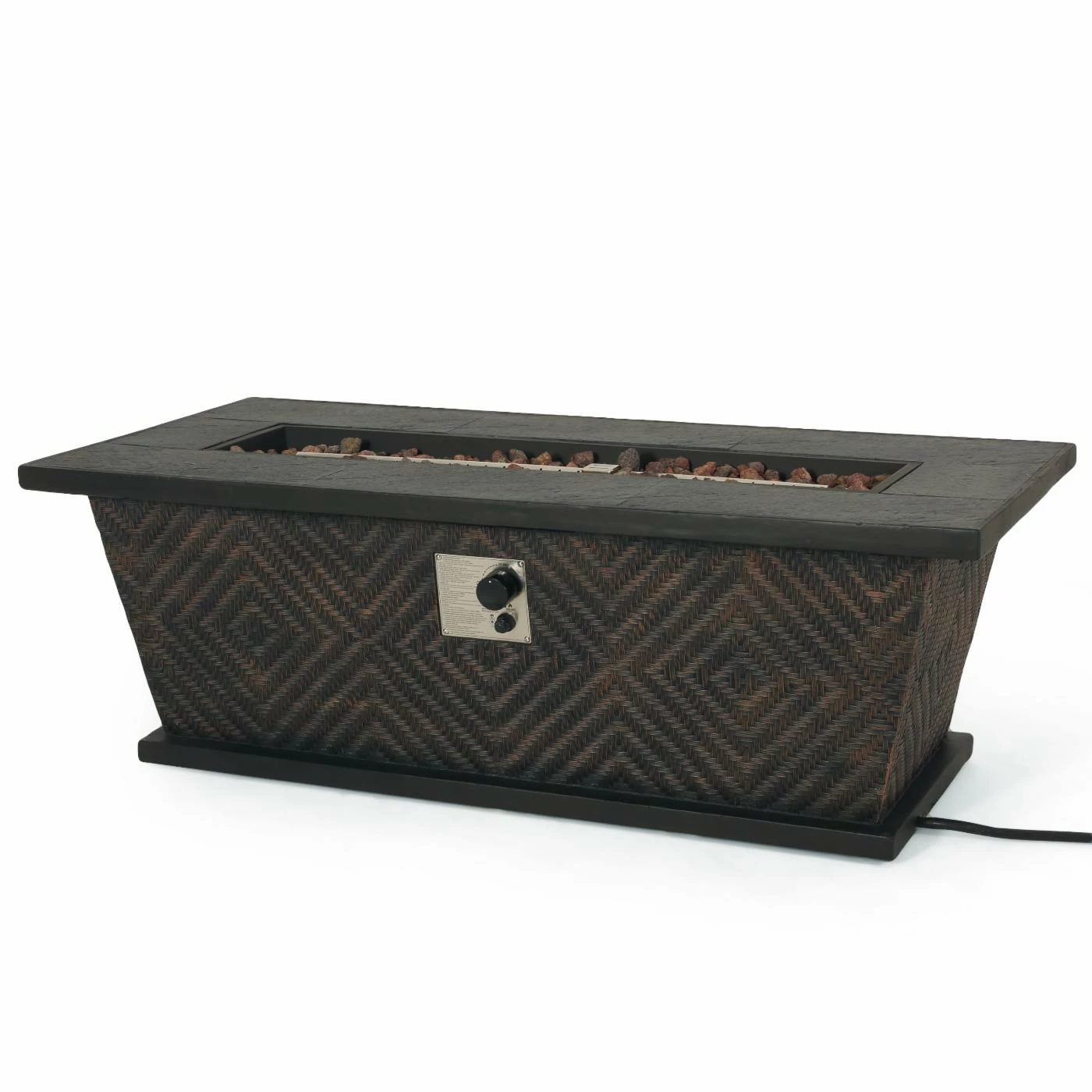 Turn your outdoor space into one of luxurious comfort. With 50,000 BTU and a lightweight concrete build with a wicker-like finish, our propane gas fire pit not only offers an incredible upgrade in style but is also perfect for parties due to its easy seating arrangement. From intimate conversations around a cozy fire to stargazing on cool summer nights, our rectangular fire pit will have no trouble gathering everyone together for hours of quality time. Please note that tank holder is NOT included.