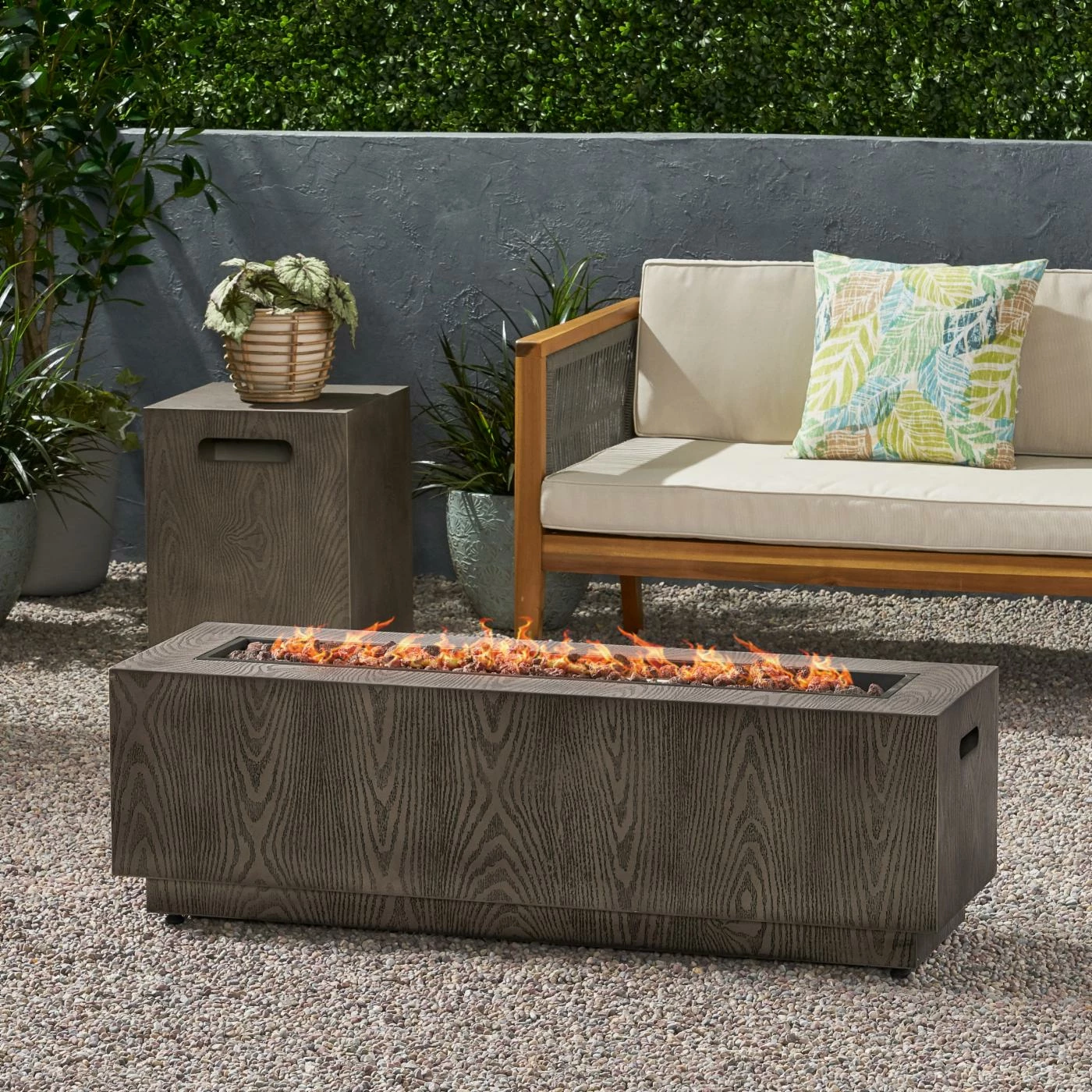 - Fire pit dimensions: 48W x 15D x 15H in.
