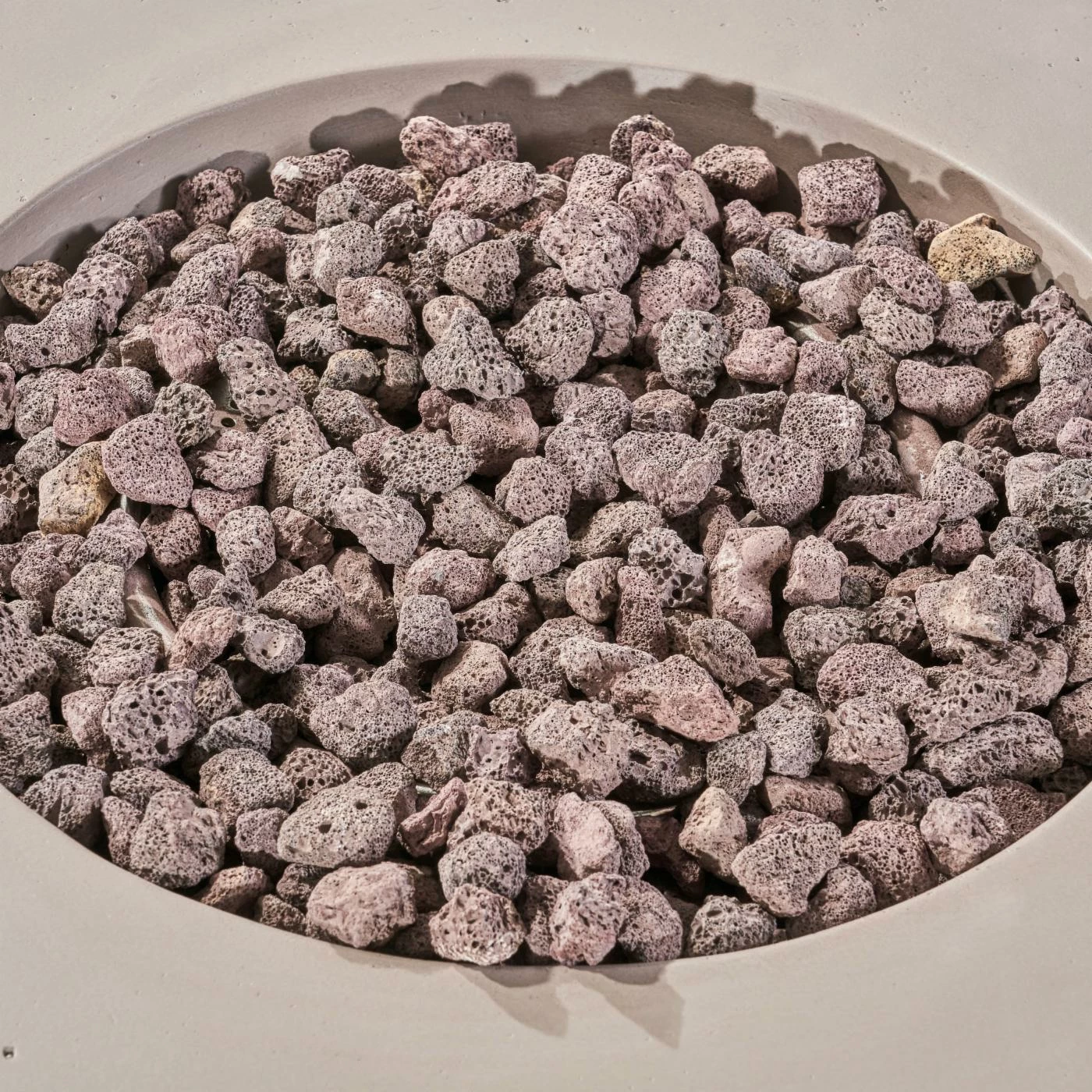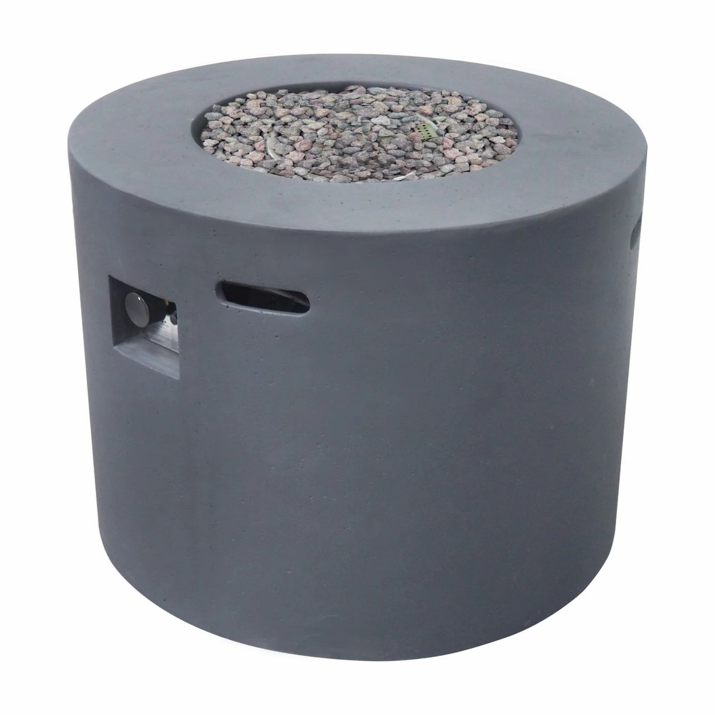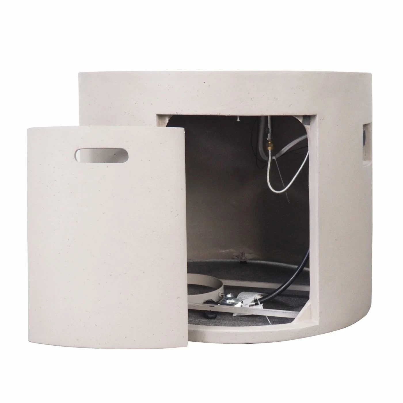 The Aidan Light Weight Concrete Gas Burning Fire Pit features a durable yet lightweight design for your outdoor space. This round fire pit is constructed of concrete and offered in your choice of available finishes. It emits 40,000 BTUs of warmth. Equipped with a cutout handle, a door lifts off to reveal a pedestal for your propane tank. Lava rocks are also included to accent the flame.