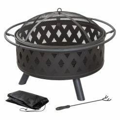 Best Sale ๐ Sunnydaze Decor Round Sunnydaze 29 In. Fire Pit And Spark Screen Set โค๏ธ