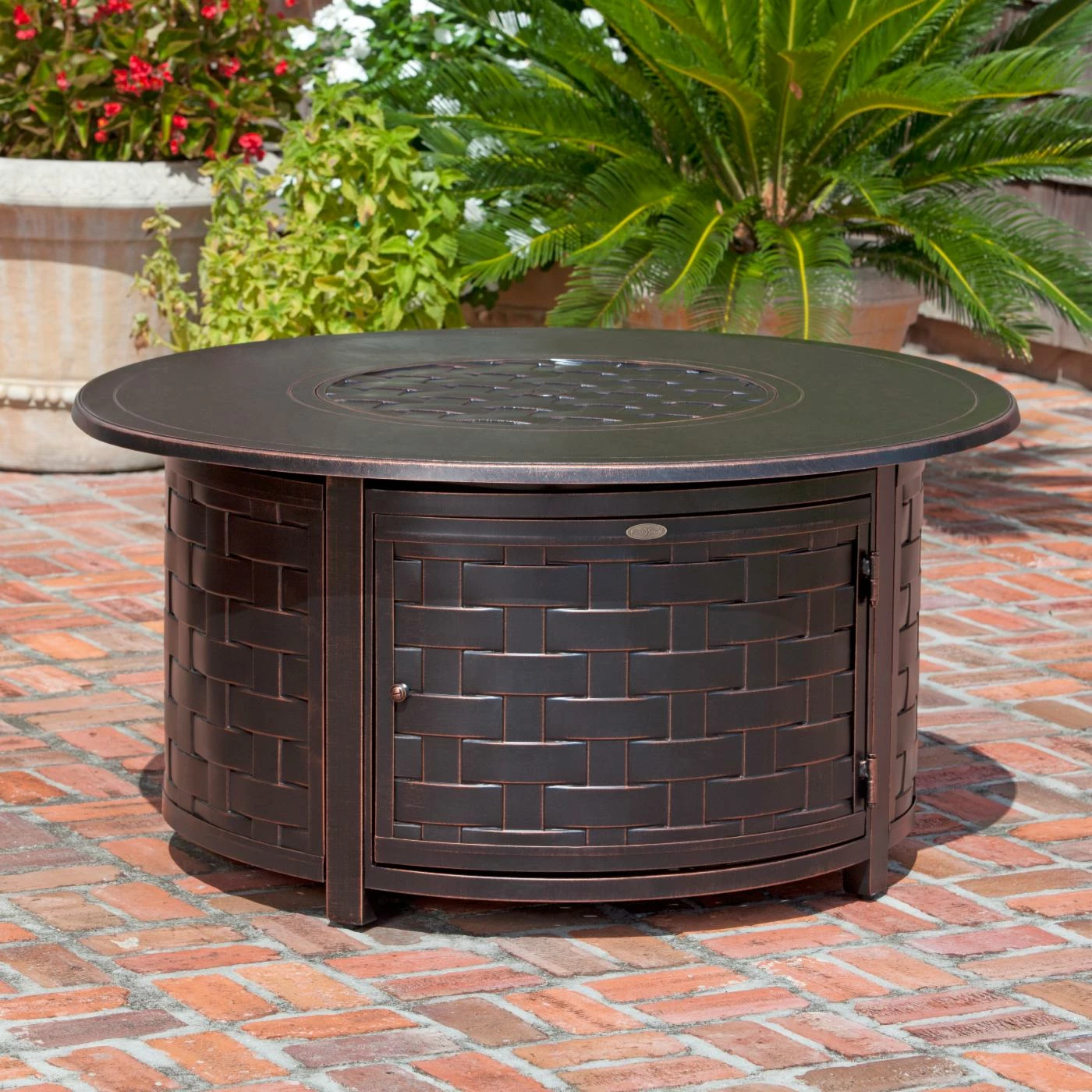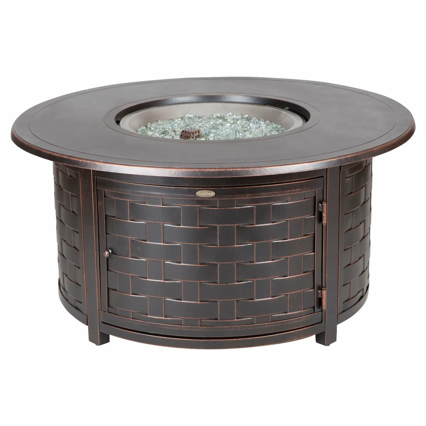 The best part of camping (possibly the only good part) is hanging around the campfire, and with the Fire Sense Perissa 44 diam. Fire Table, you get that same relaxing vibe in the comfort of your own space. Flames from the stainless steel burner are accented by the shimmering quality of clear fire glass. The body of the fire pit is made from cast aluminum, a material that’s light enough to move around yet tough enough for regular use. Aluminum is also naturally rust-resistant, and the antique bronze finish highlights the woven-style of the body. A hinged door gives you easy access to the standard-sized propane tank, and adjustable flame lets you enjoy a little flicker or a full-on light show. When you’d rather have a table, an aluminum lid fits right over the fire bowl to give you a round, 44-inch table.