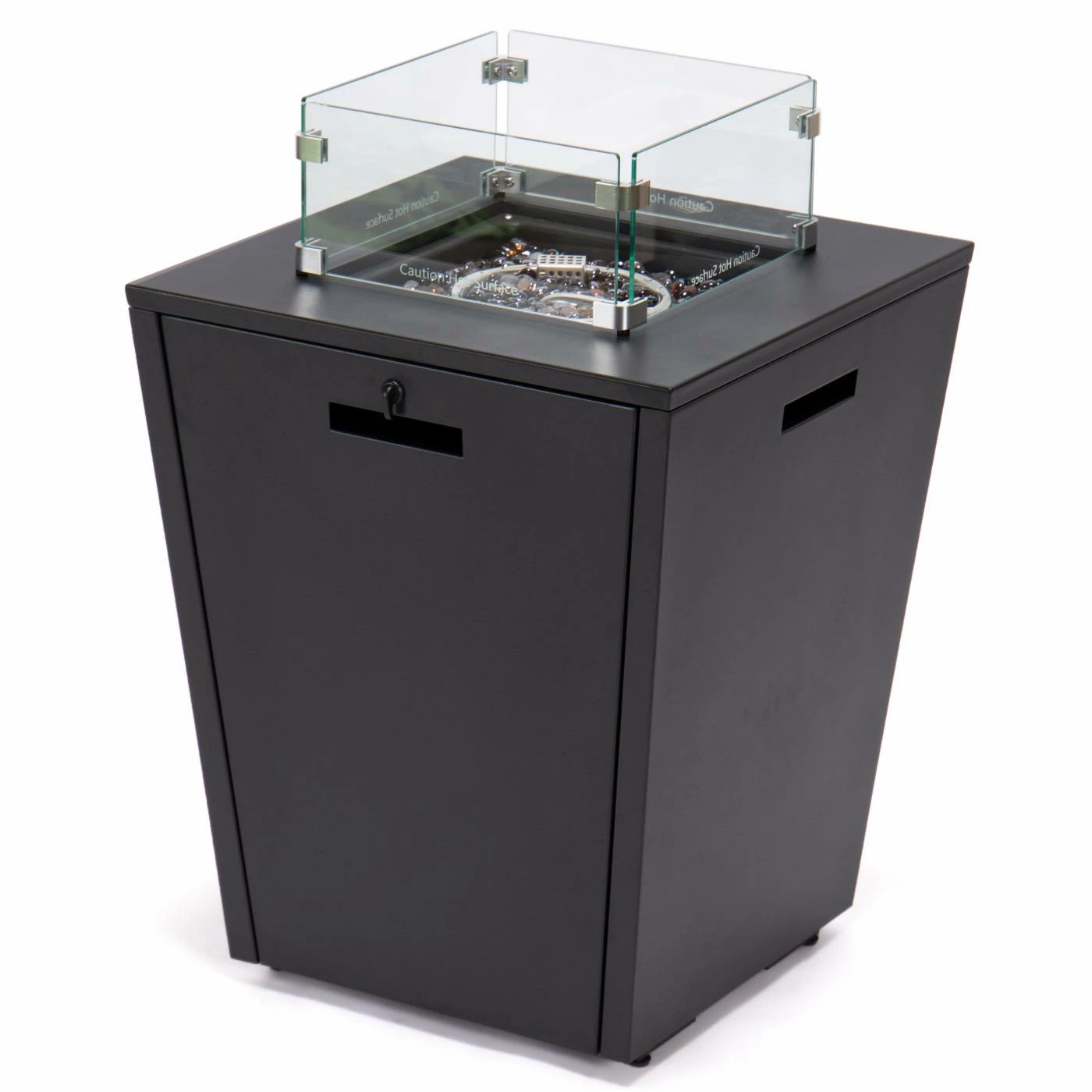 - Crystal Stones and tempered glass accent flames