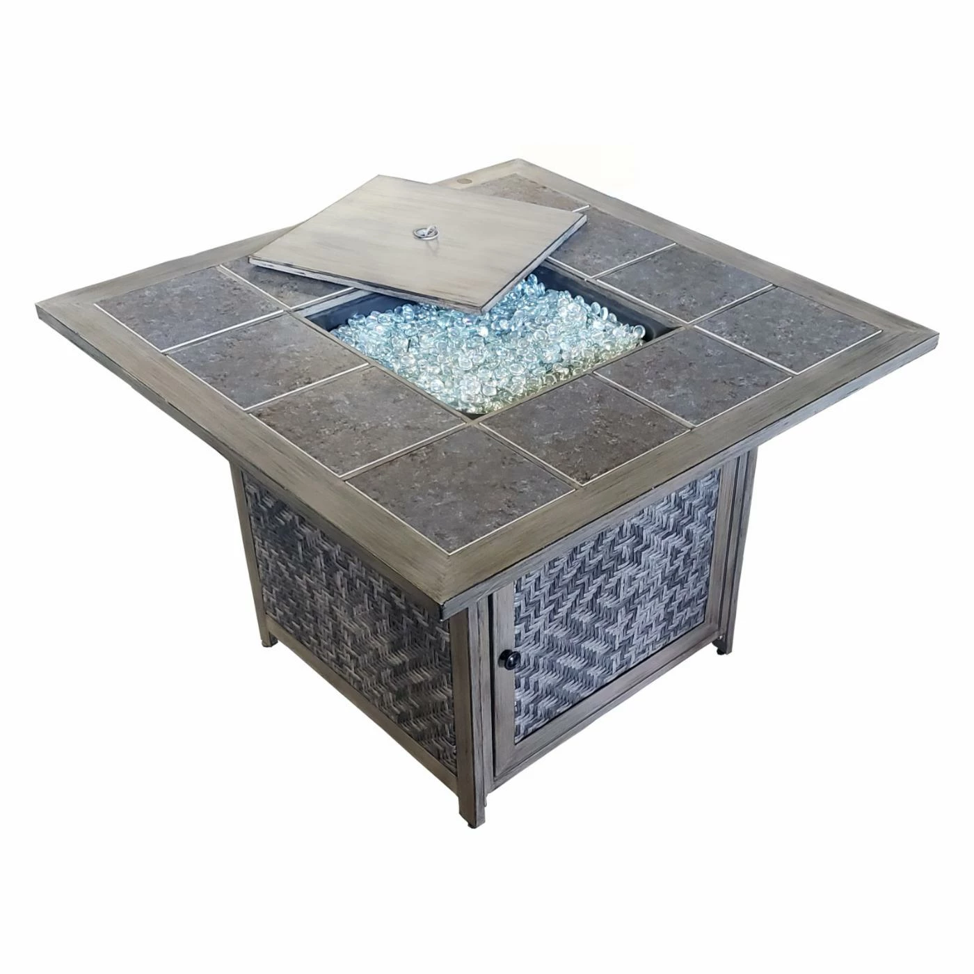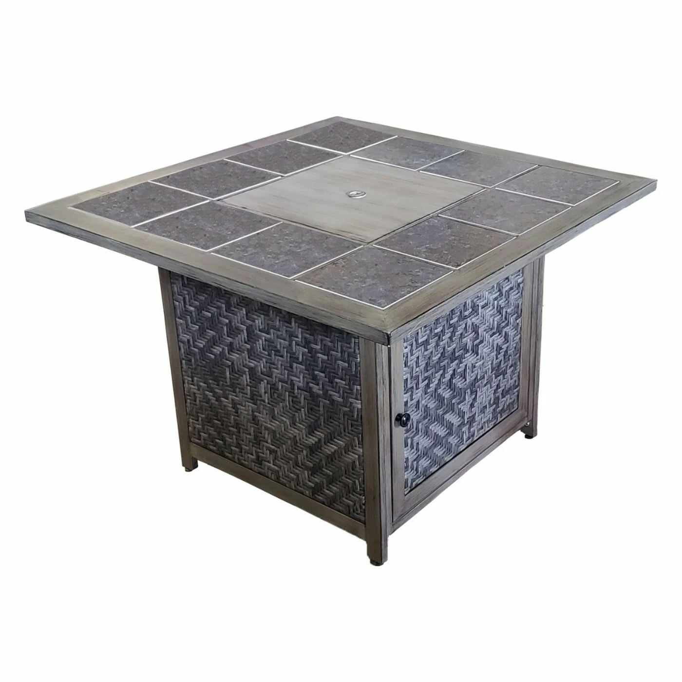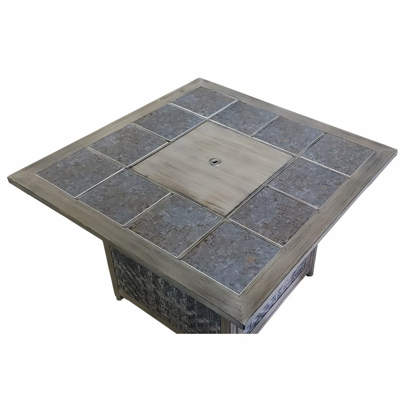 Stay warm in the cooler seasons thanks to the Paradise Cove Designs Basin 37 in. Square Firepit Table. This square fire pit table has a durable aluminum frame with PVC, wicker-like mesh on the sides in a gray finish. Wood grain details give the fire pit the appearance of wood without all of the maintenance that comes with outdoor wood furniture.