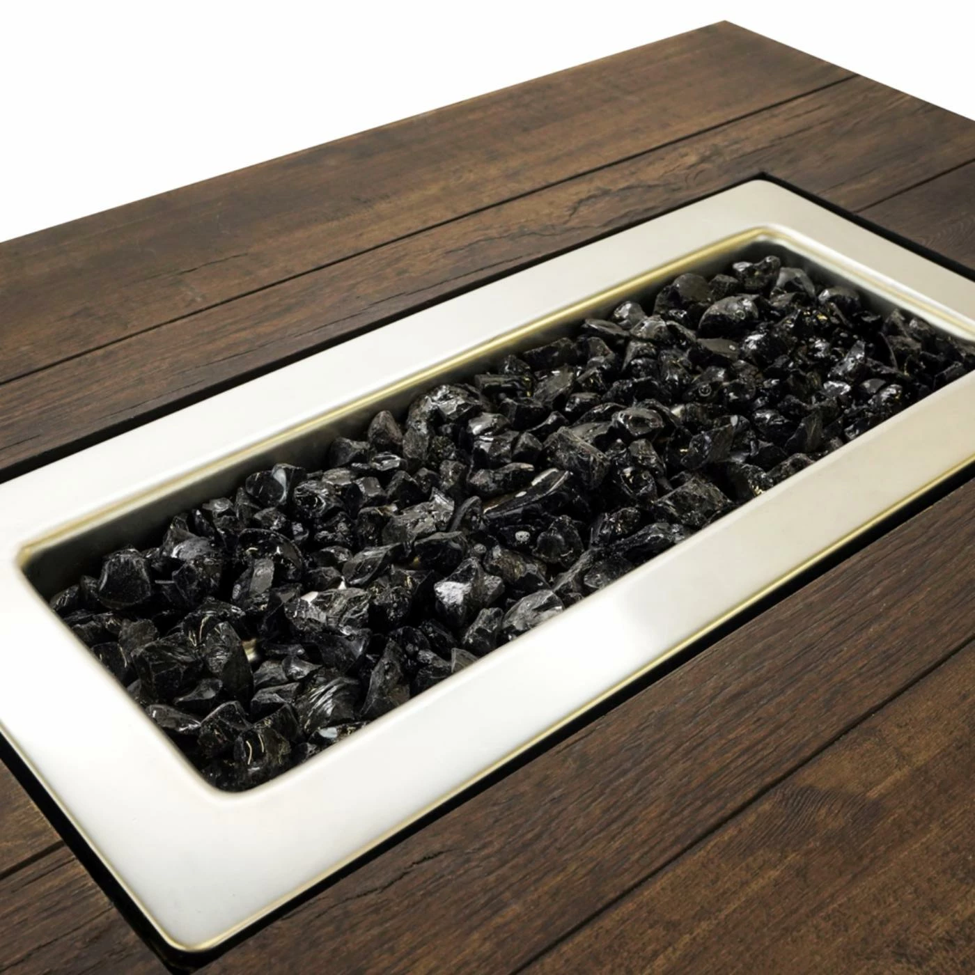 With its black embossed steel base, stainless steel fire bowl, and UV printed faux wood mantel, The Marc Fire Pit is the epitome of backyard luxury. The easy push-and-turn electronic ignitionβlocated on the hidden control panelβand automatic shutoff safety device make this gas fire pit safe for every user. The added length of this rectangular fire pit makes it the perfect companion for a chat set.