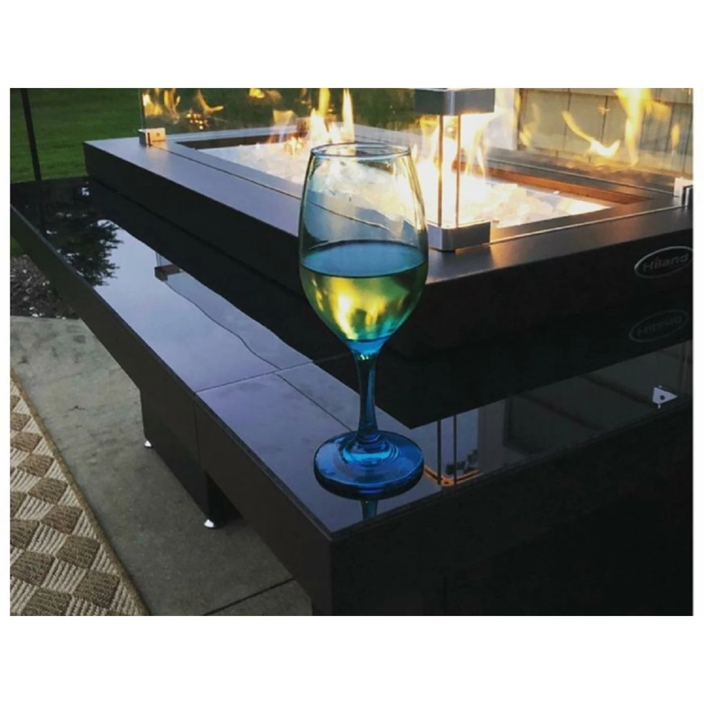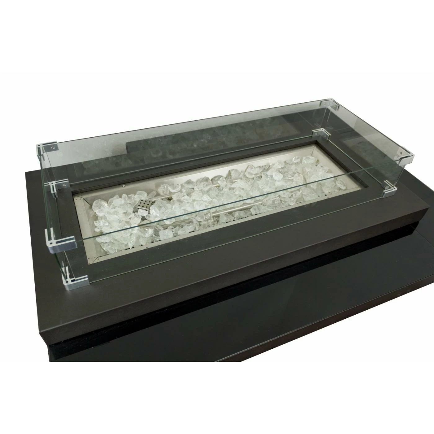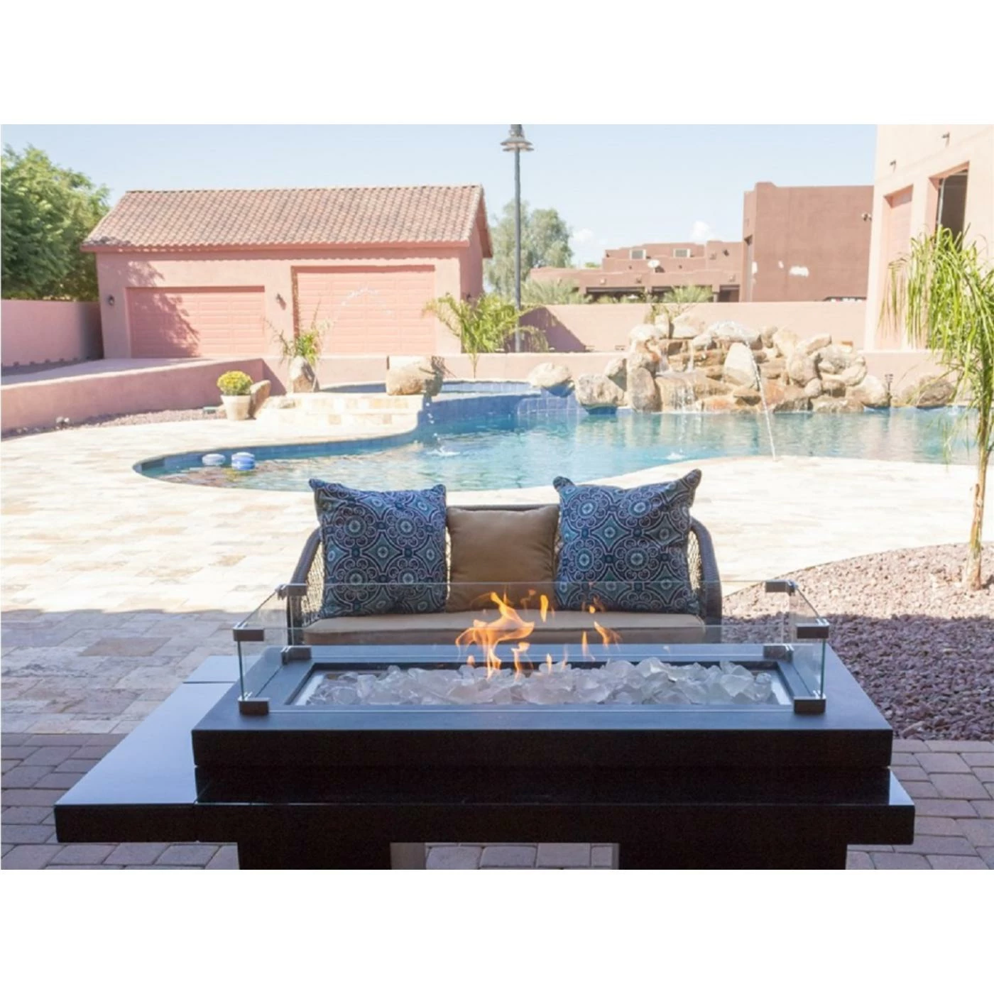 Enjoy your backyard a little more by adding this elegantly modern two-tiered propane fire pit in a beautiful black mocha finish. A battery-operated pulse ignition gives way to a propane heater that emits up to 50,000 BTUs of heat. Clear fire glass covers the burner and adds a touch of elegance. An easy access door located at the base allows you to easily conceal a 20 lb. propane tank (not included). For added safety, this fire pit comes with a thermocouple flame failure device as well as wind glass. This Propane Fire Pit from AZ Patio Heaters requires some assembly before it can be used and is CSA certified.