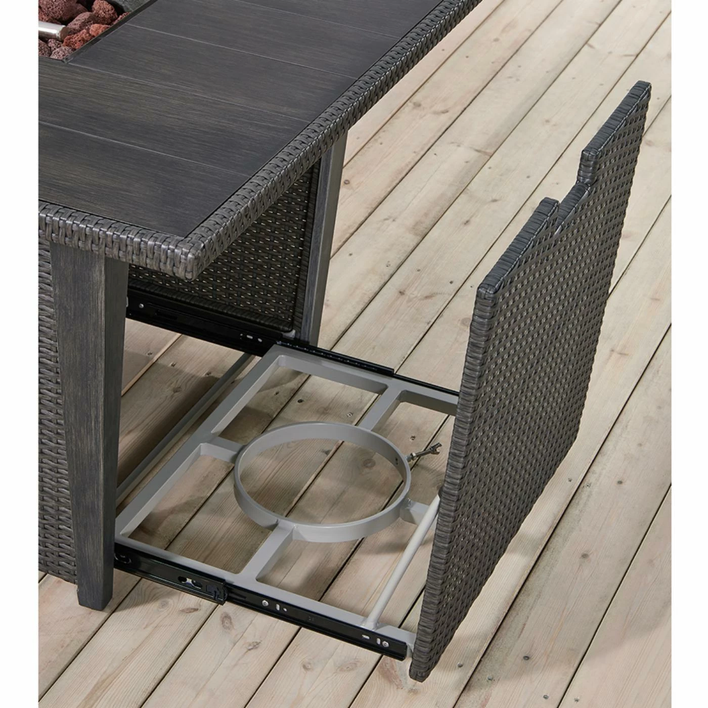 Use the wheeled pull-out tray to easily remove and replace your propane tank (tank not included). When you’re done, just push the tray back in to hide the tank out of sight. Other helpful features? Push-button ignition (no pesky matches) and adjustable flame control.