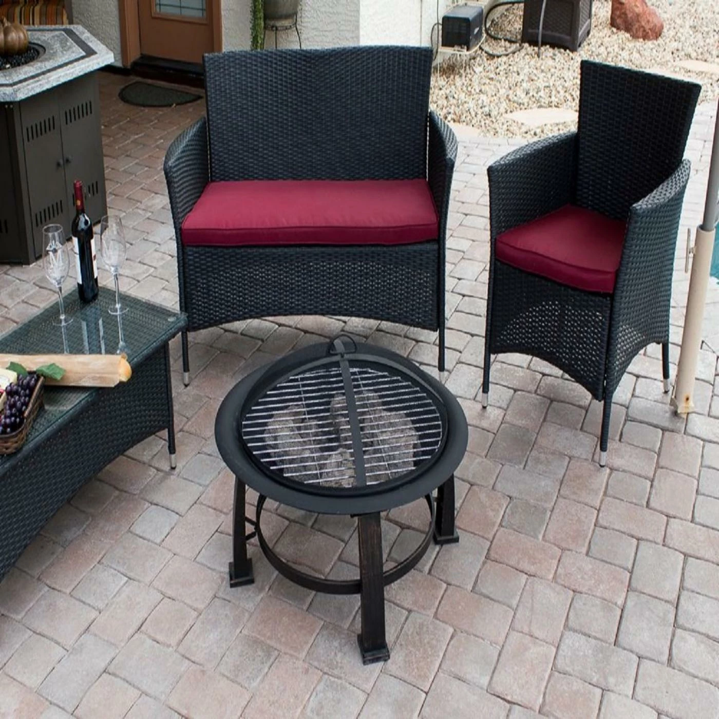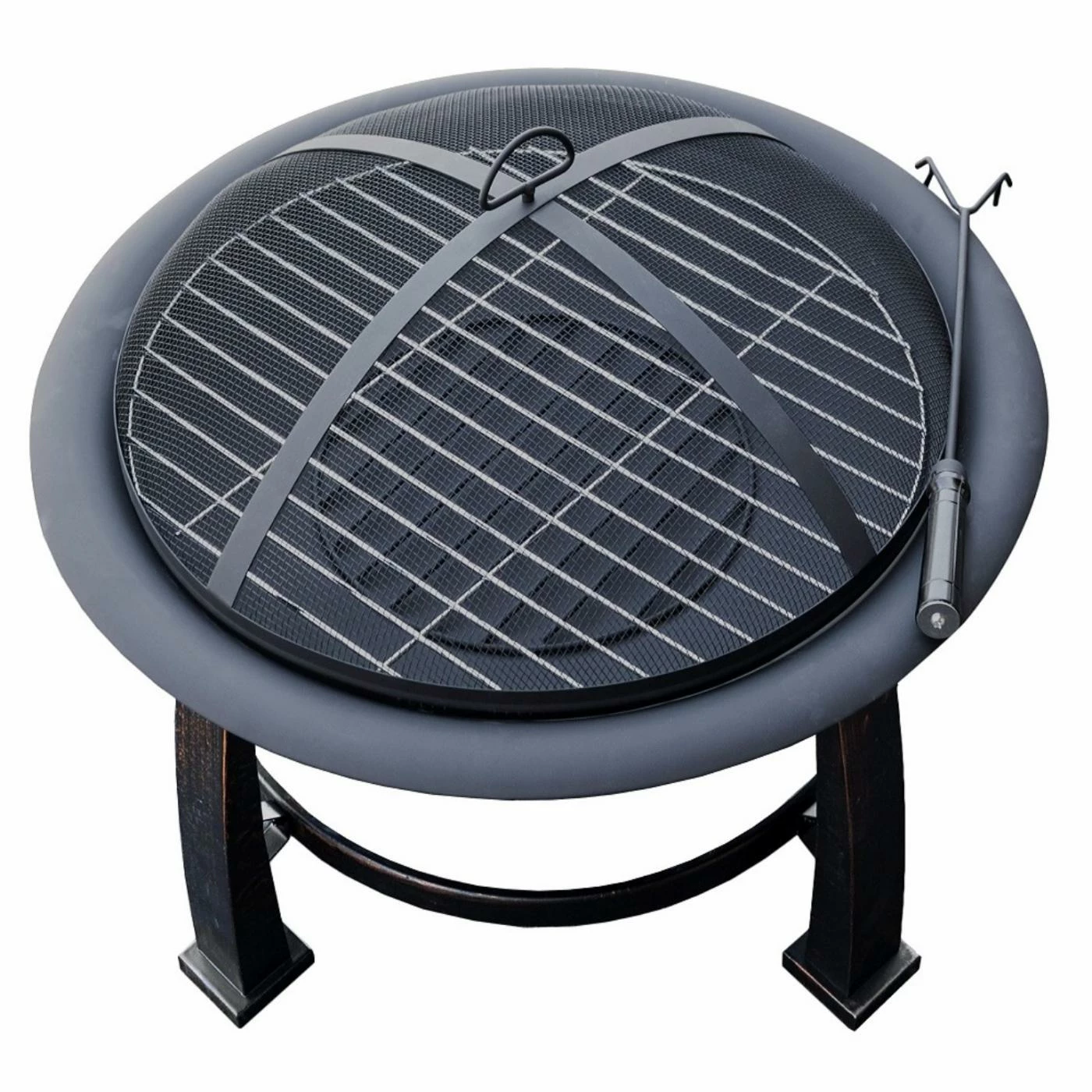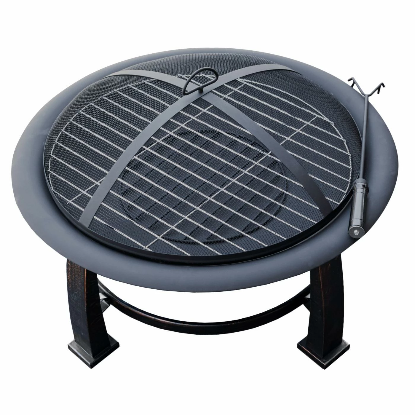 Have some function with your form as you enjoy AZ Patio Heaters 30 diam. Fire Pit with Cooking Grate. This round fire pit features a sturdy steel construction with a brushed black finish, and modern design to complement any style. The deep bowl (with included wood grate) is perfect for burning larger fires. When you’re not simply enjoying the ambience, use the generous area of the included cooking grate to grill burgers, skewers, or whatever else is on the menu. The easy-to-lift mesh guard keeps sparks from flying away, and the light design makes this fire pit ideal to transport to your next gathering.