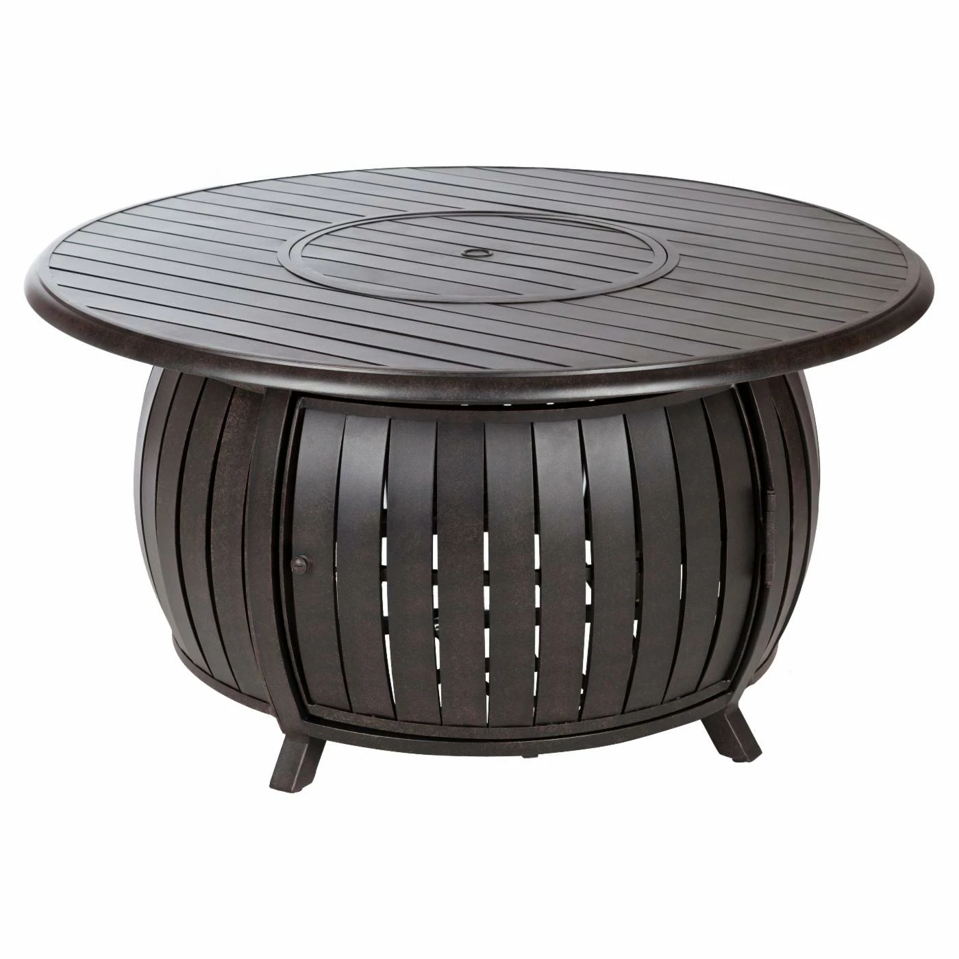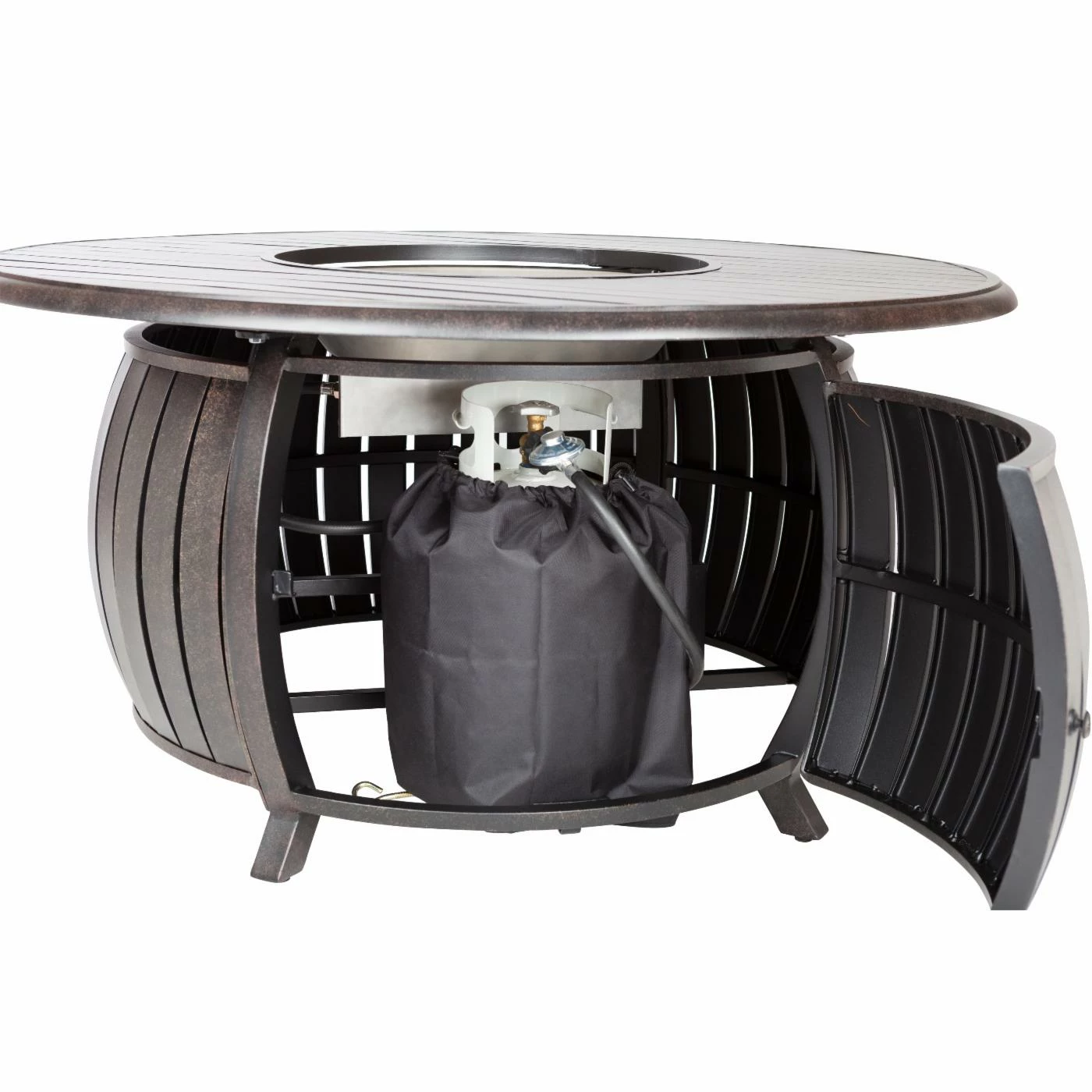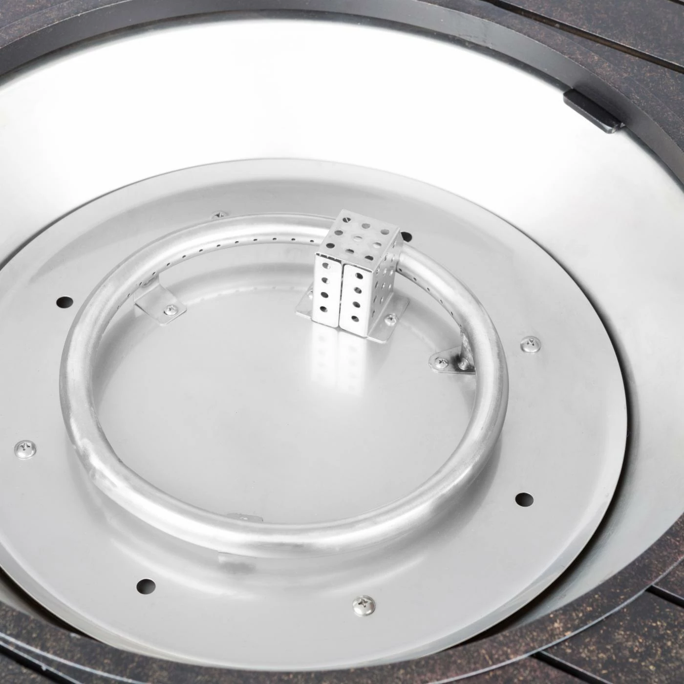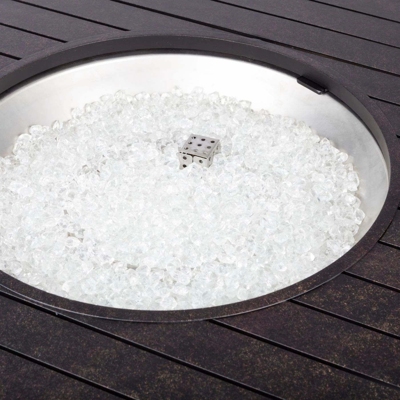 Add the Fire Sense 47 diam. Fire Table to your dΓ©cor for a function piece of furniture that’s sure to remain in use during every month of the year. This round fire pit table comes crafted from extruded aluminum and is protected from scratches and moisture-damage by an antique bronze finish. The stainless-steel burner is powered by a standard 20-lb. liquid propane tank (not included), housed inside the belly of the cauldron-like base and producing up to 40,000 BTUs. A matching extruded aluminum top is included to cover the fire bowl and allow for use as a regular patio table. A 18-lb. package of clear fire glass is included to conceal the burner. Also included is a cover to protect the unit from the elements when retired for longer periods.