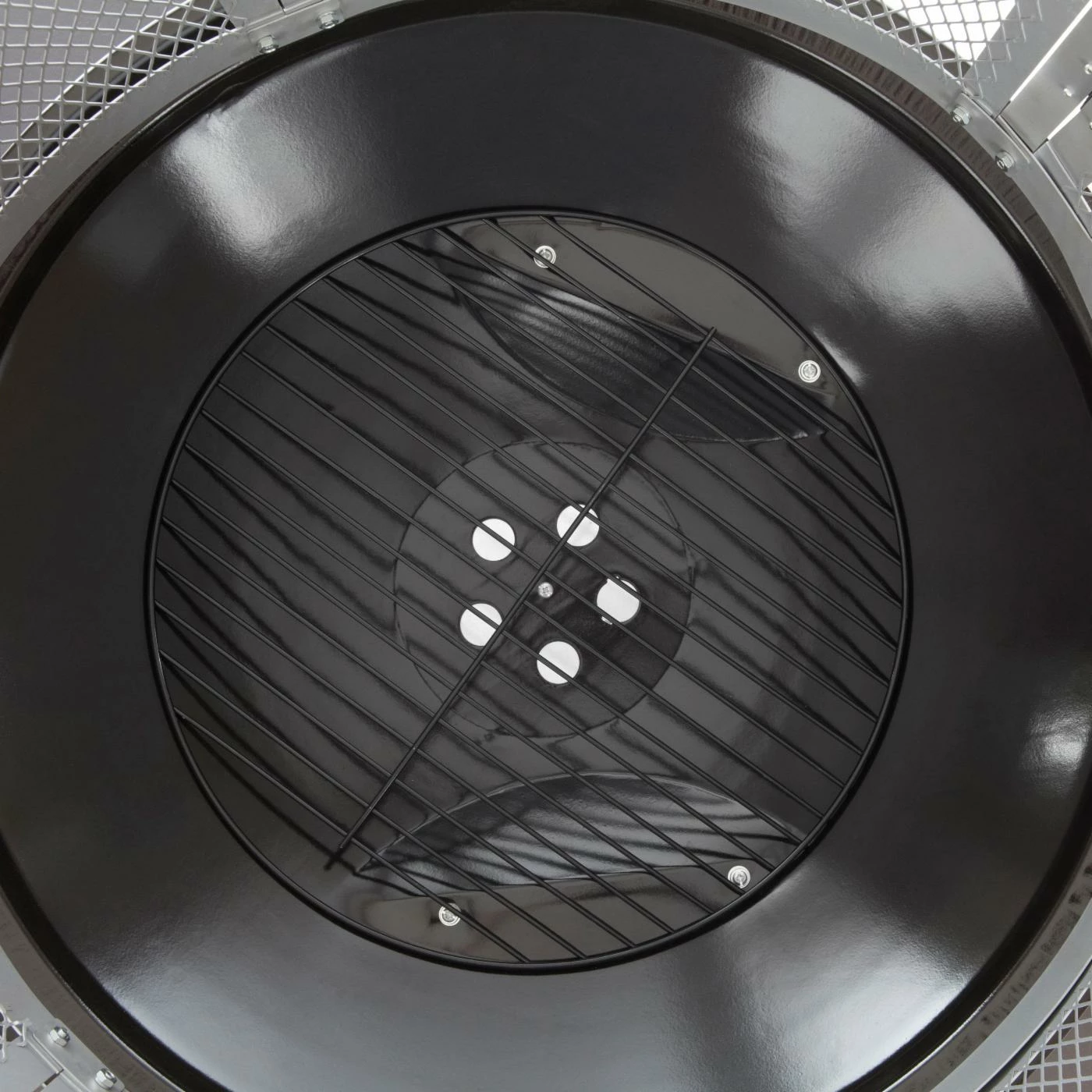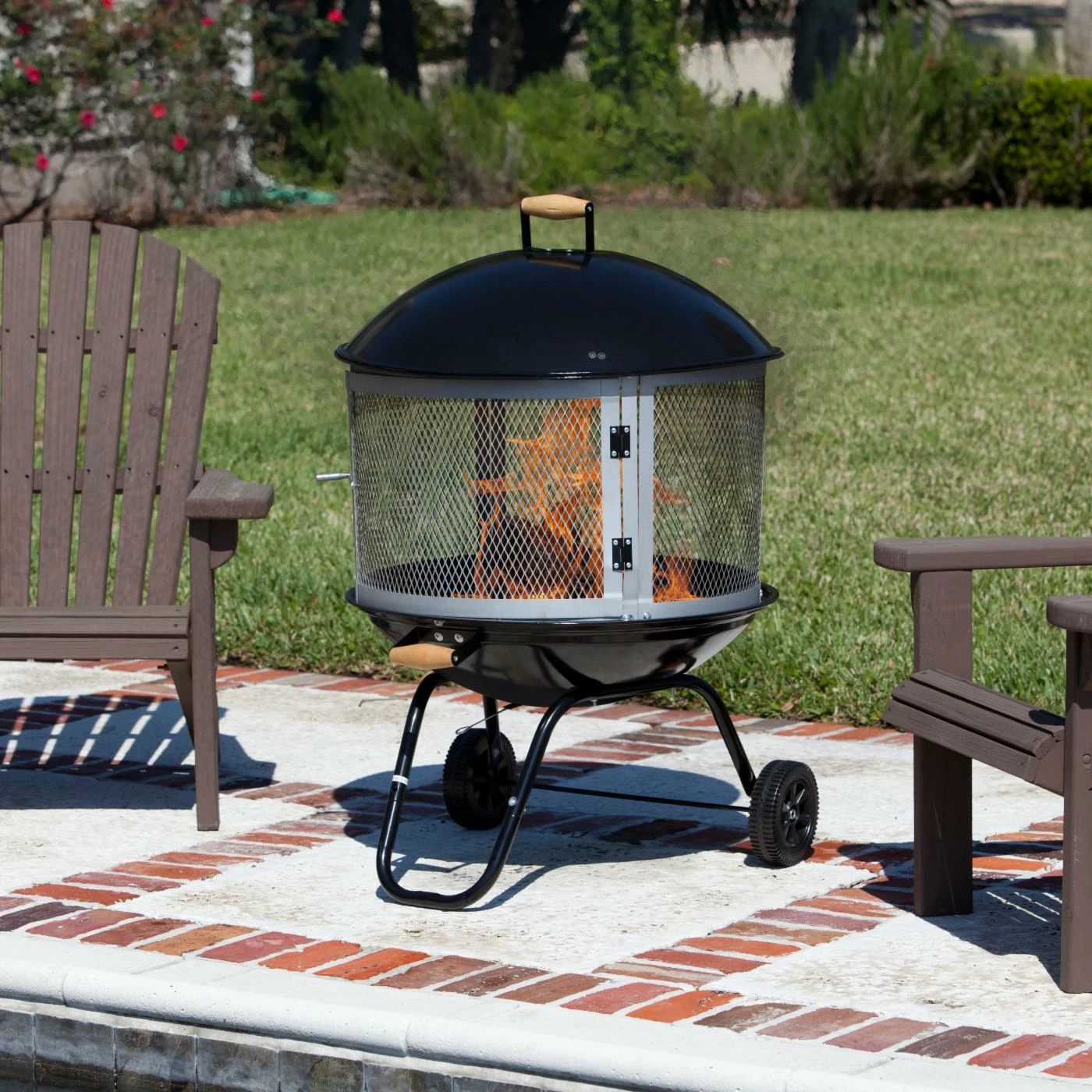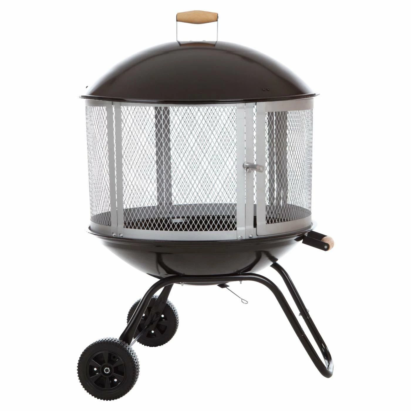 The Fire Sense Bessemer Portable 28 diam. Fire Pit is a deluxe mobile patio fireplace. This beauty has a porcelain enamel bowl and lid, both in durable black. Its steel grate is perfect for wood or charcoal fuel. The steel fire screen has a silver, high-temperature finish that keeps the fire contained yet visible. This patio fireplace has a center door for easy access to the fire. Durable wheels and handle assembly allow you to position it in the perfect spot.