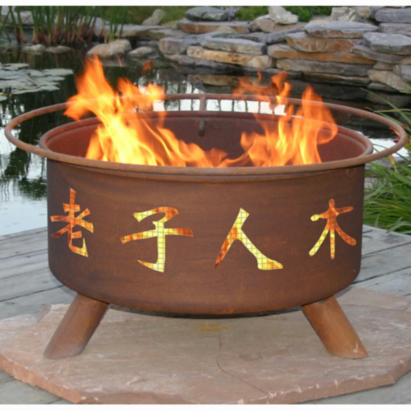 The perfect fire pit for gardens and patios with an Oriental flair, the Patina Chinese Symbols Fire Pit will add to the ambiance with or without a fire. This metal bottom fire pit with sturdy legs is craftedΒ of durable cold-rolled steel. Perfect for camping or entertaining, it comes complete with a BBQ grill insert, a safety screen, and a poker for stirring the coals. Natural rust patina finish. No assembly isΒ required. FREE Fire pit cover is included!
