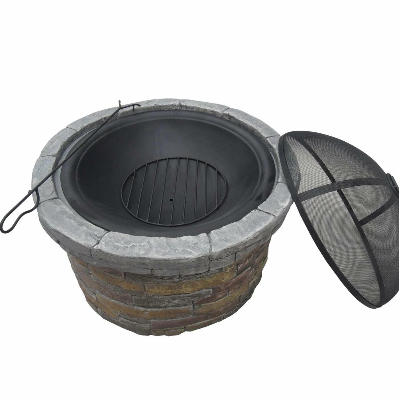 Bonfires are one of the best ends to a long summer day and the Peaktop Stone 26.6 diam. Fire Pit with Cover will provide a safe and cozy fire for you and the guest of your choosing. This round stone fire pit, constructed from concrete and steel, is the perfect size for a small gathering with s’mores and good company or a glass of wine with your special someone. This fire pit comes complete with a cover to protect you from the flames and sparks, a charcoal grid and poking stick are also included. The cover removes for easy cleaning.