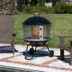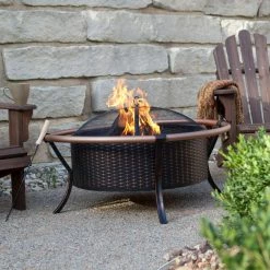 For a warm, rustic ambiance, add the Sunnydaze Decor Rope and Barrel 29 diam. Fire Table to your outdoor living space. This cast stone fire pit resembles a rugged barrel wrapped in rope. Its generous 40,000 BTU output ensures guests will be toasty warm. This fire pit boasts a concealed panel to hide your liquid propane tank (sold separately).