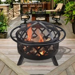 Discount ๐ Round Sunnydaze Decor Northwoods Fishing 30 Diam. Fire Pit With Spark Screen ๐