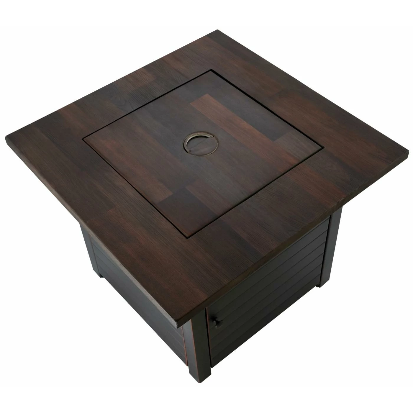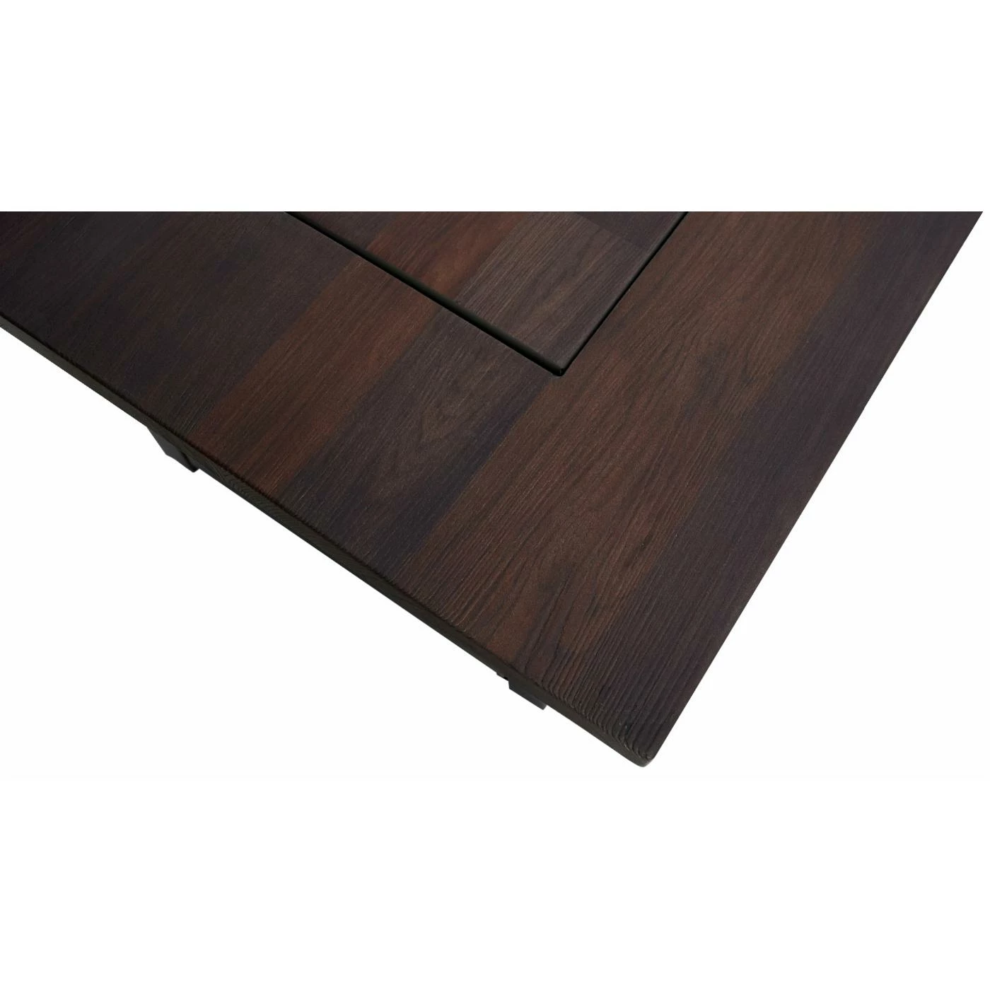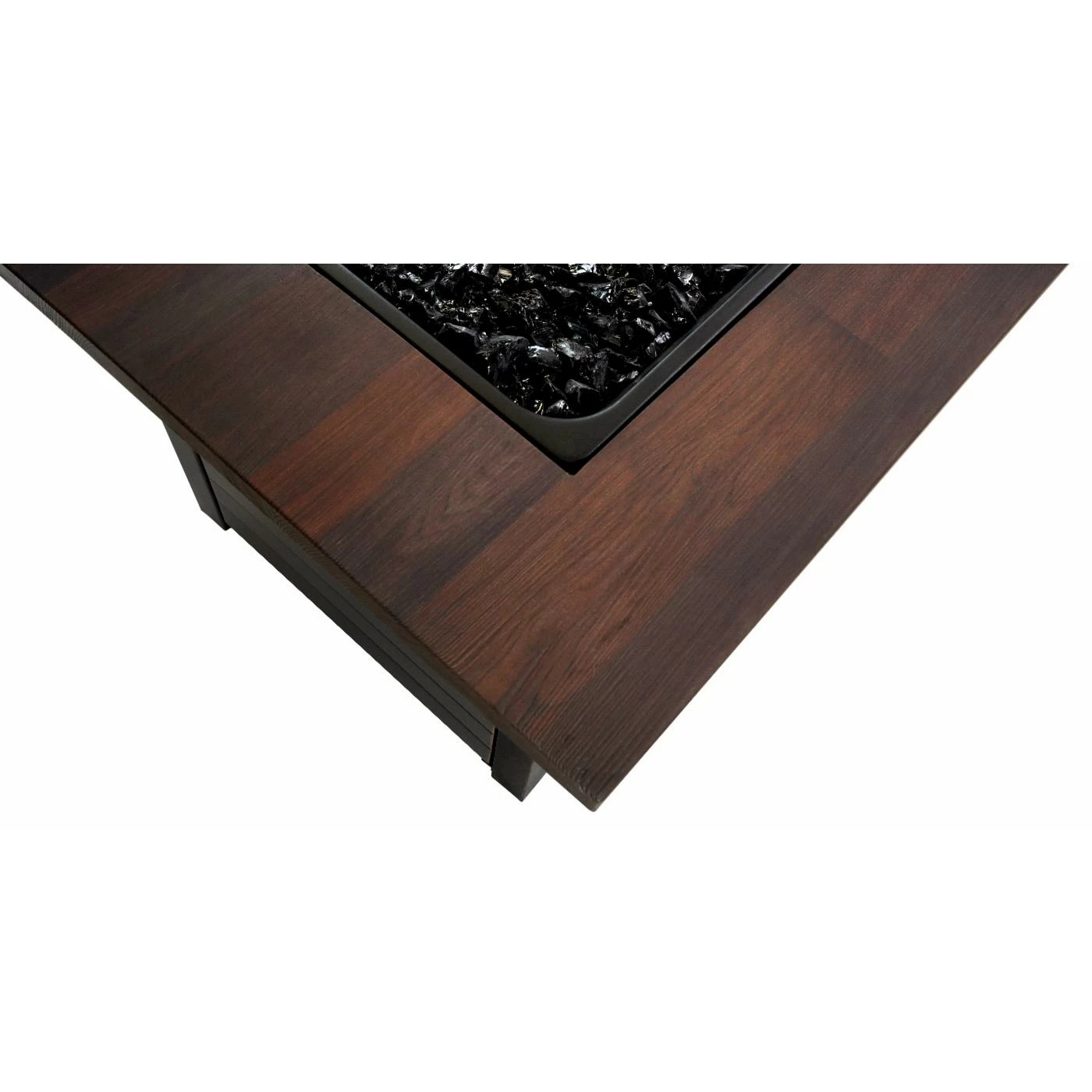 Equipped with a hidden control panel and a concealed propane tank storage cavity, The Spencer Fire Pit is the epitome of functionality and style. With its sleek, dark brown finish and elegant black fire glass, this steel frame fire pit will upgrade your outdoor living space in no time. This square-shaped, propane fire pit also comes complete with a spacious hideaway table that’s perfect for hosting multiple guests.