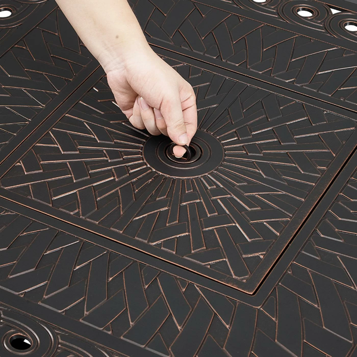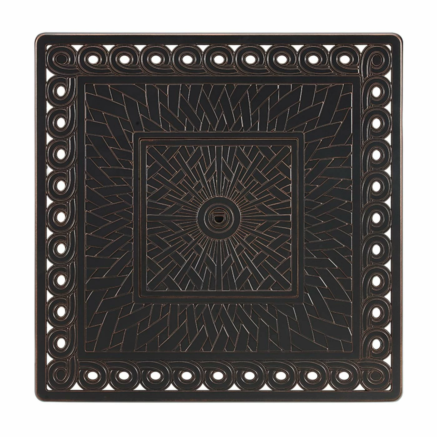 Compatible with any contemporary or traditional outdoor dΓ©cor, the Fire Sense Cartney 32 in. Propane Fire Pit features an ornate woven motif complemented by a scrollwork on the tabletop. With an Antique Bronze brushed finish, practical aluminum build, and an output of 37,000 BTU, this versatile fire pit pulls double duty as a patio table when you add the included fire bowl lid with flush-mounted handle. Arriving with clear fire glass pebbles for a sparkling accent, just add a standard 20 lb. propane tank behind the convenient hinged door. A vinyl weather cover for the fire pit is included for your convenience.
