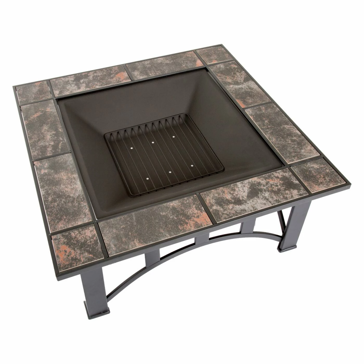 A gorgeous way to set the evening’s mood, the Pure Garden 33 in. Tile Fire Pit with Free Cover is a patio piece you’ll find yourself gravitating toward no matter the time of year. Its sturdy frame is crafted from solid steel and finished in a protective powder-coated black. The fire bowl is bordered by lovely brown tile and comes with a spark screen to help protect against pops and spits. A wood grate is also included to make sure your logs have enough airflow. Tend to the logs with the included poker and don’t forget to use the PVC cover to keep the fire pit safe when the sky looks stormy.