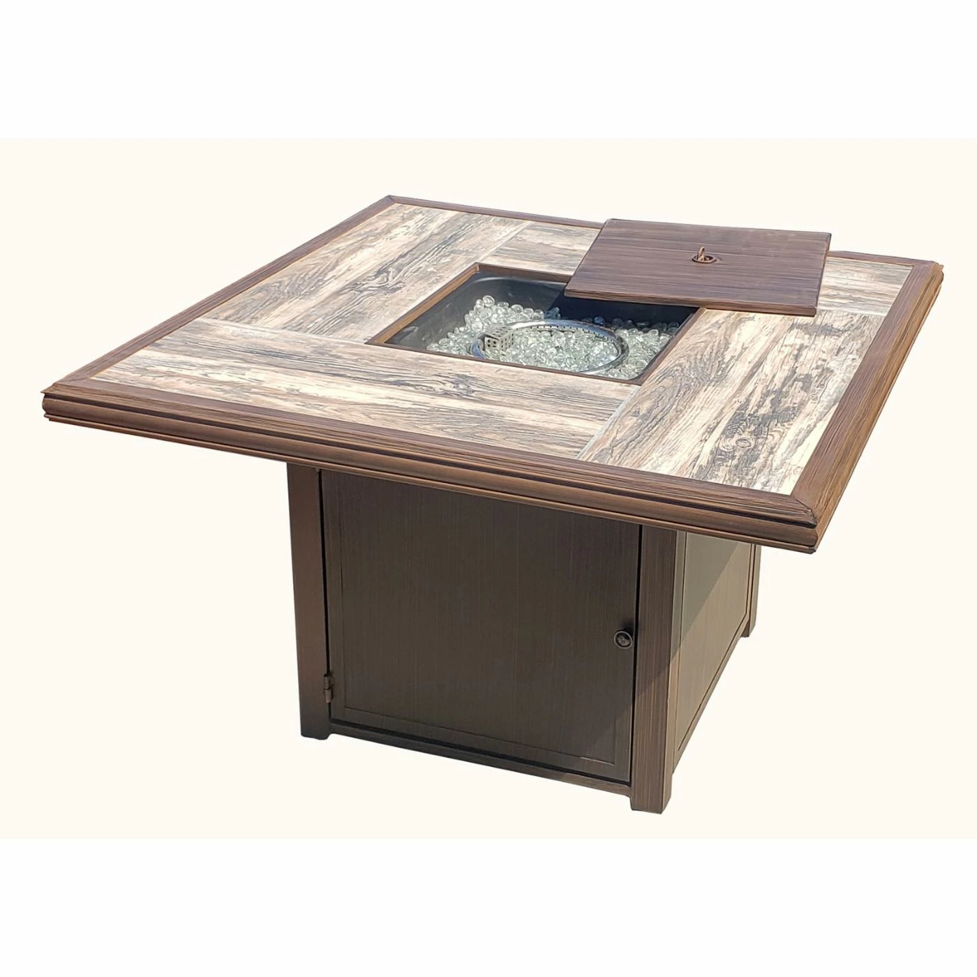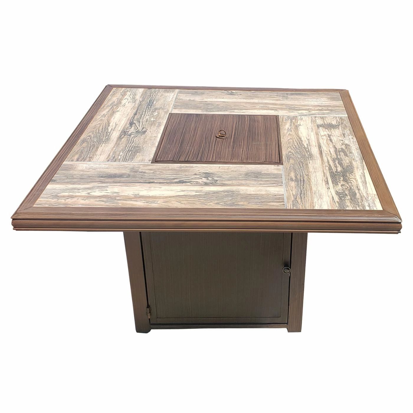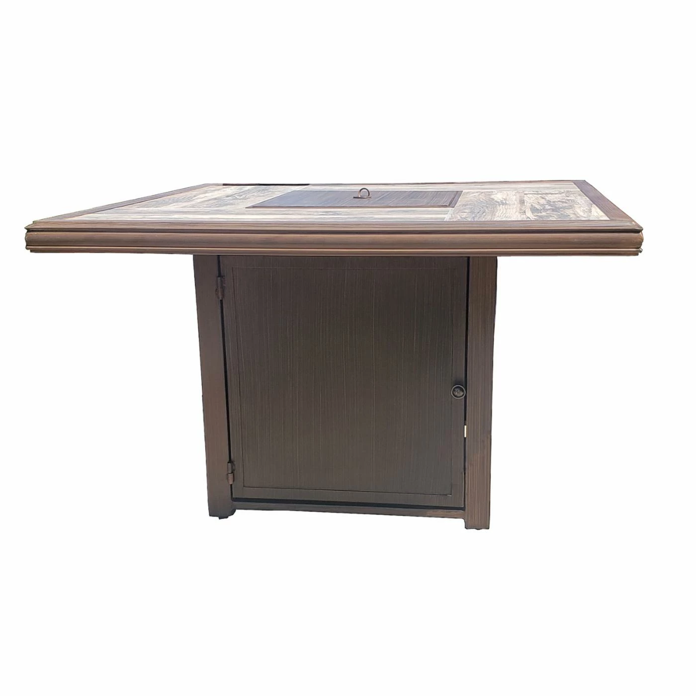 With its ceramic tile mantle in choice of color, the handcrafted Summerville Gobi Square Propane Fire Pit Table is perfect for any size decks and patios. The weather resistant aluminum base hides the propane tank and the control panel. Complete with a 50,000 BTU, this fire pit comes with fire glass making it easier for you to enjoy all the ambiance of a classic fire without the mess of tending ashes. The fire pit turns into a table by adding the insert to cover the fire pit. It has a rustic transitional design that can fit into any decor style.