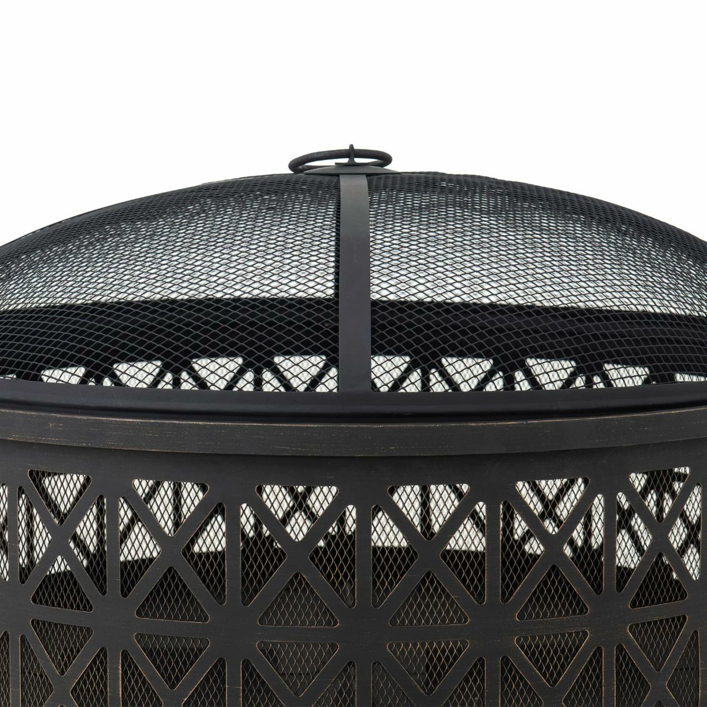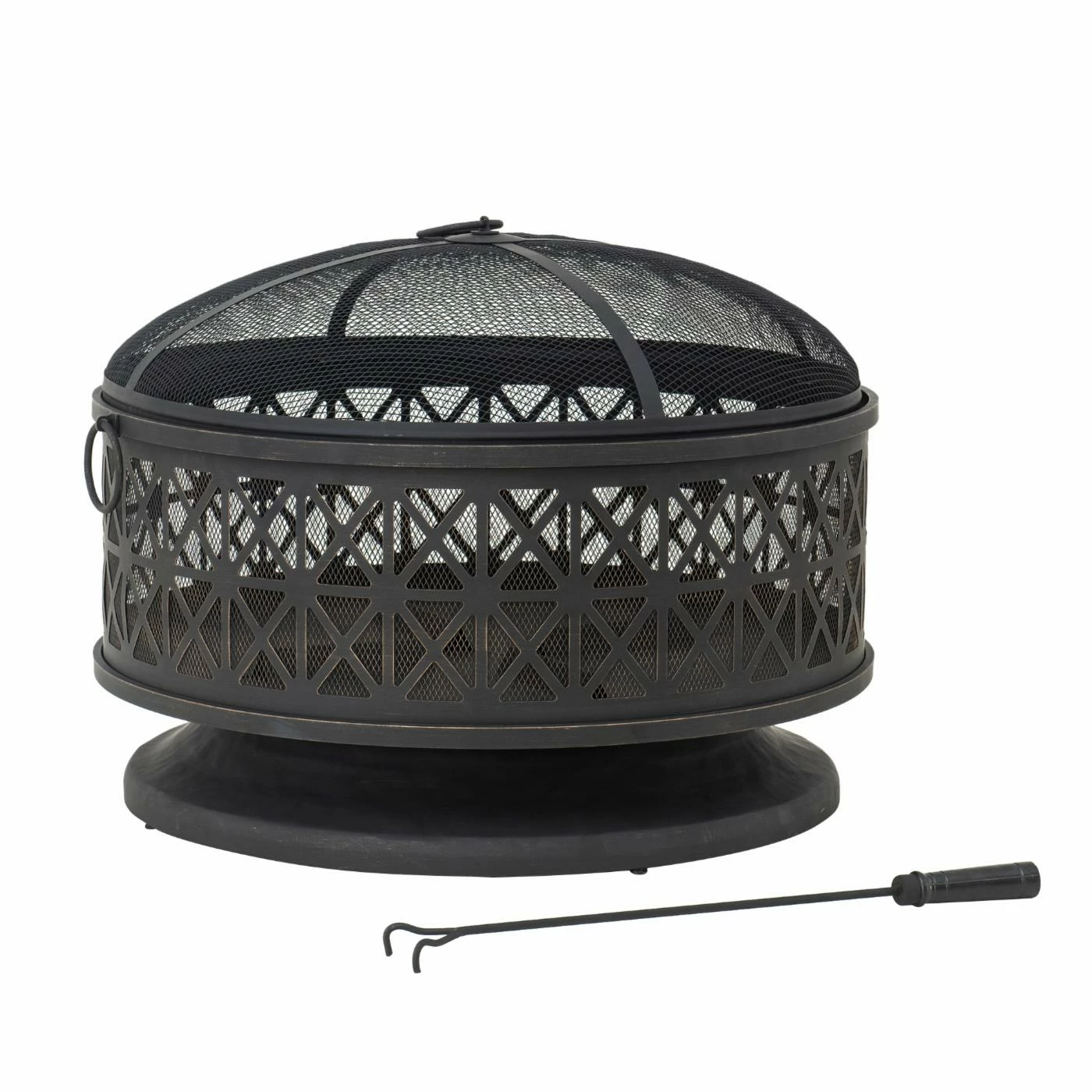 Whether roasting marshmallows, enjoying a glass of wine or just swapping stories under the stars this outdoor wood-burning firepit transforms your backyard into a relaxation destination. Made from powder-coated steel the firepit enables you to build a large warm fire. A fire poker and mesh screen to catch sparks are included. Gather friends and family and enjoy time outdoors even more with this firepit from Sunjoy, the world’s leading ready-to-assemble outdoor structure maker.